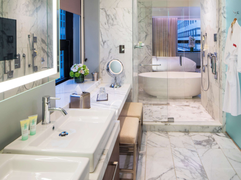 Hyatt Grand Central New York is a premier Midtown Manhattan hotel directly connected to Grand Central Station, offering unmatched convenience for exploring the city. Guests enjoy spacious rooms and suites with plush beds, 50-inch HDTVs, workstations, and select rooms with city views. Two-bedroom suites feature separate living and dining areas.